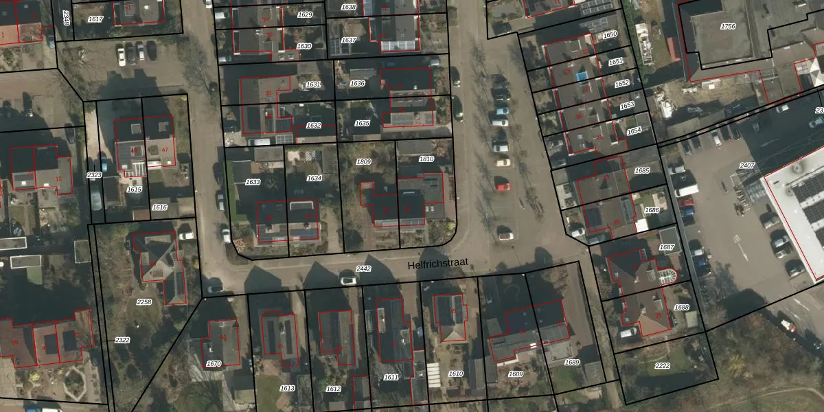 Het perceel waarop Helfrichstraat 20 staat heeft een oppervlakte van 358 m². Dit is een groot perceel. De perceeloppervlakte wordt geregistreerd door het Kadaster. Gedetailleerde informatie over de maten van dit perceel kunt u vinden in het rapport Kadastrale kaart met maatvoering van Helfrichstraat 20.
