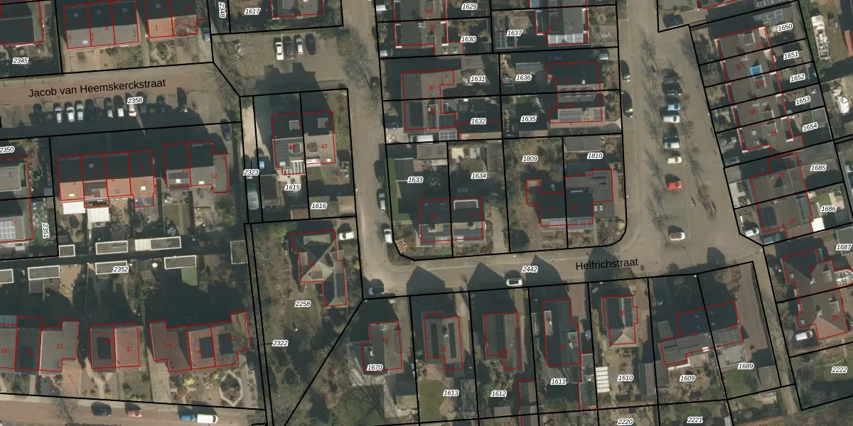 Helfrichstraat 26 is gelegen op kadastraal perceel GBK00E1633. Deze kadastrale aanduiding is uniek en wordt gebruikt door het Kadaster om eigendomsrechten en andere zakelijke rechten vast te leggen. Het perceel maakt onderdeel uit van de kadastrale gemeente Groesbeek.