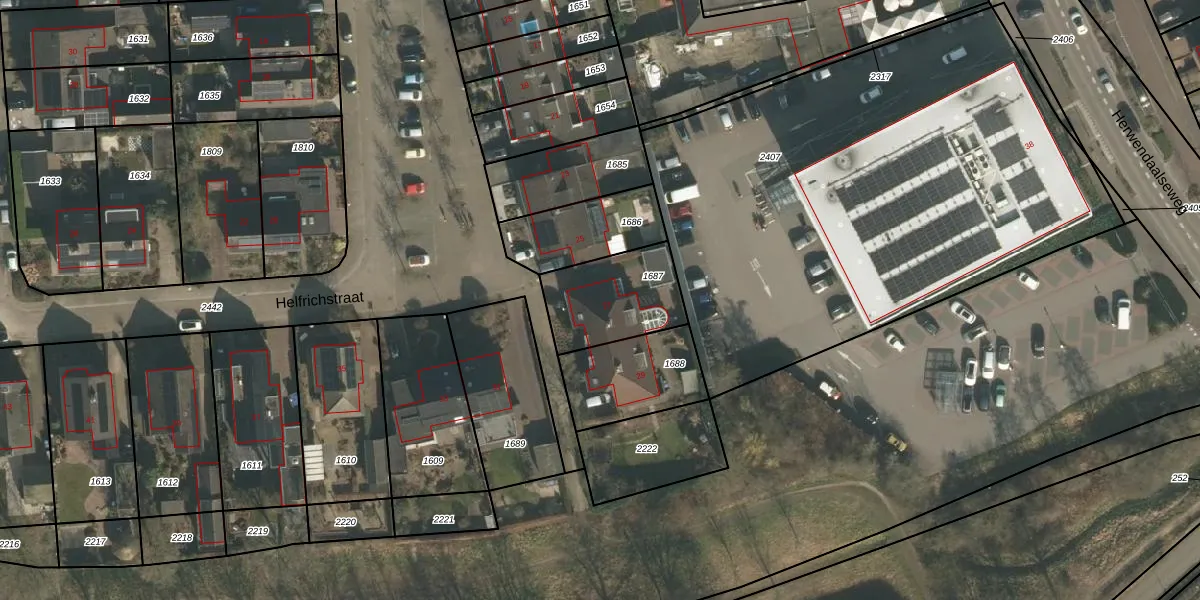 Helfrichstraat 27 is gelegen op kadastraal perceel GBK00E1687. Deze kadastrale aanduiding is uniek en wordt gebruikt door het Kadaster om eigendomsrechten en andere zakelijke rechten vast te leggen. Het perceel maakt onderdeel uit van de kadastrale gemeente Groesbeek.