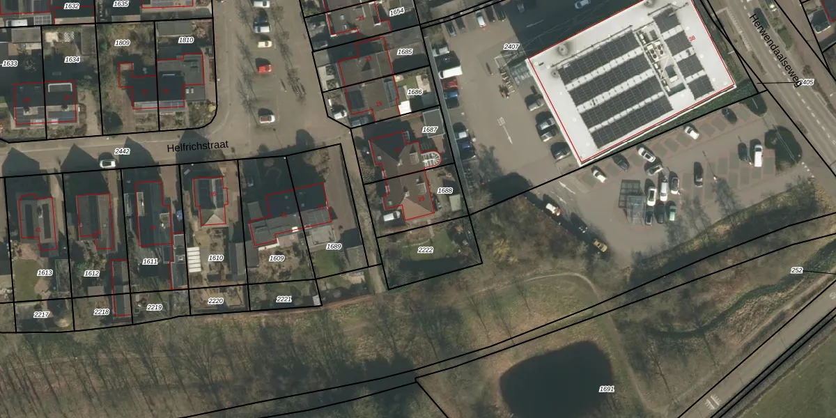 Helfrichstraat 29 is gelegen op kadastraal perceel GBK00E1688. Deze kadastrale aanduiding is uniek en wordt gebruikt door het Kadaster om eigendomsrechten en andere zakelijke rechten vast te leggen. Het perceel maakt onderdeel uit van de kadastrale gemeente Groesbeek.
