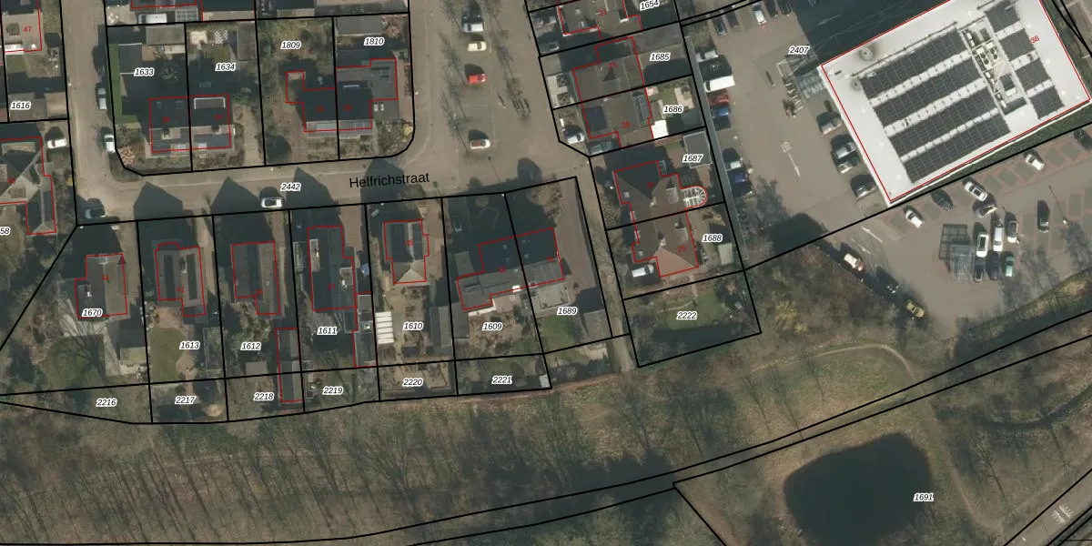 Het perceel waarop Helfrichstraat 31 staat heeft een oppervlakte van 406 m². Dit is een groot perceel. De perceeloppervlakte wordt geregistreerd door het Kadaster. Gedetailleerde informatie over de maten van dit perceel kunt u vinden in het rapport Kadastrale kaart met maatvoering van Helfrichstraat 31.