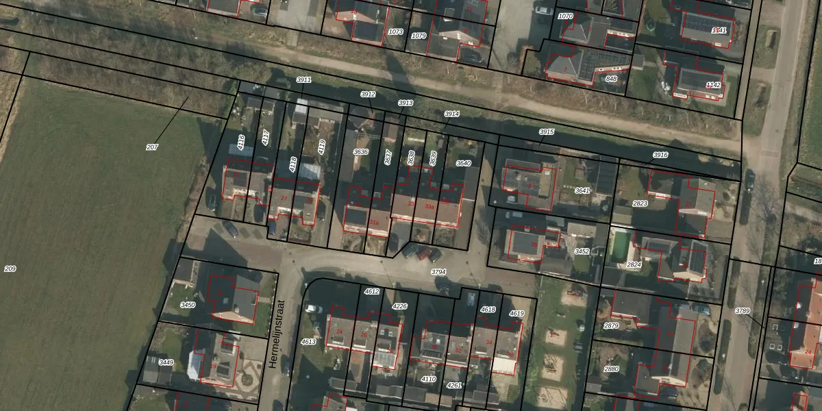 Hermelijnstraat 33 is gelegen op kadastraal perceel GBK00C3638. Deze kadastrale aanduiding is uniek en wordt gebruikt door het Kadaster om eigendomsrechten en andere zakelijke rechten vast te leggen. Het perceel maakt onderdeel uit van de kadastrale gemeente Groesbeek.