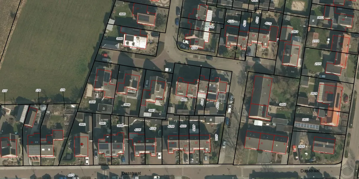 Het perceel waarop Hermelijnstraat 7 staat heeft een oppervlakte van 424 m². Dit is een groot perceel. De perceeloppervlakte wordt geregistreerd door het Kadaster. Gedetailleerde informatie over de maten van dit perceel kunt u vinden in het rapport Kadastrale kaart met maatvoering van Hermelijnstraat 7.