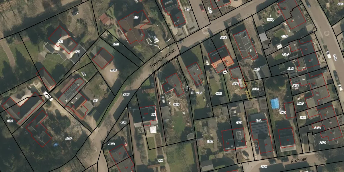 Het perceel waarop Heumensebaan 19 staat heeft een oppervlakte van 785 m². Dit is een groot perceel. De perceeloppervlakte wordt geregistreerd door het Kadaster. Gedetailleerde informatie over de maten van dit perceel kunt u vinden in het rapport Kadastrale kaart met maatvoering van Heumensebaan 19.