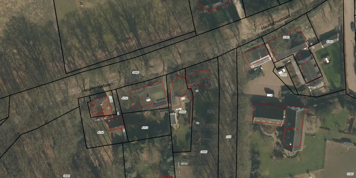 Het perceel waarop Heumensebaan 27-a staat heeft een oppervlakte van 545 m². Dit is een groot perceel. De perceeloppervlakte wordt geregistreerd door het Kadaster. Gedetailleerde informatie over de maten van dit perceel kunt u vinden in het rapport Kadastrale kaart met maatvoering van Heumensebaan 27-a.