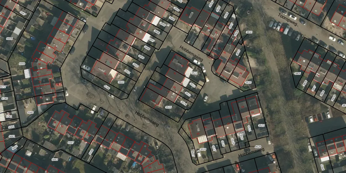 Gebruik de zoekbalk of klik op een perceel voor informatie over de adressen binnen dit perceel.