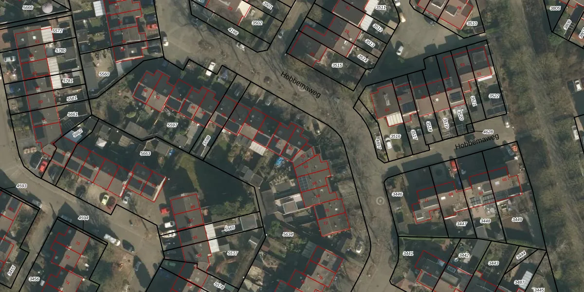 Het perceel waarop Hobbemaweg 60 staat heeft een oppervlakte van 2907 m². Dit is een zeer groot perceel. De perceeloppervlakte wordt geregistreerd door het Kadaster. Gedetailleerde informatie over de maten van dit perceel kunt u vinden in het rapport Kadastrale kaart met maatvoering van Hobbemaweg 60.