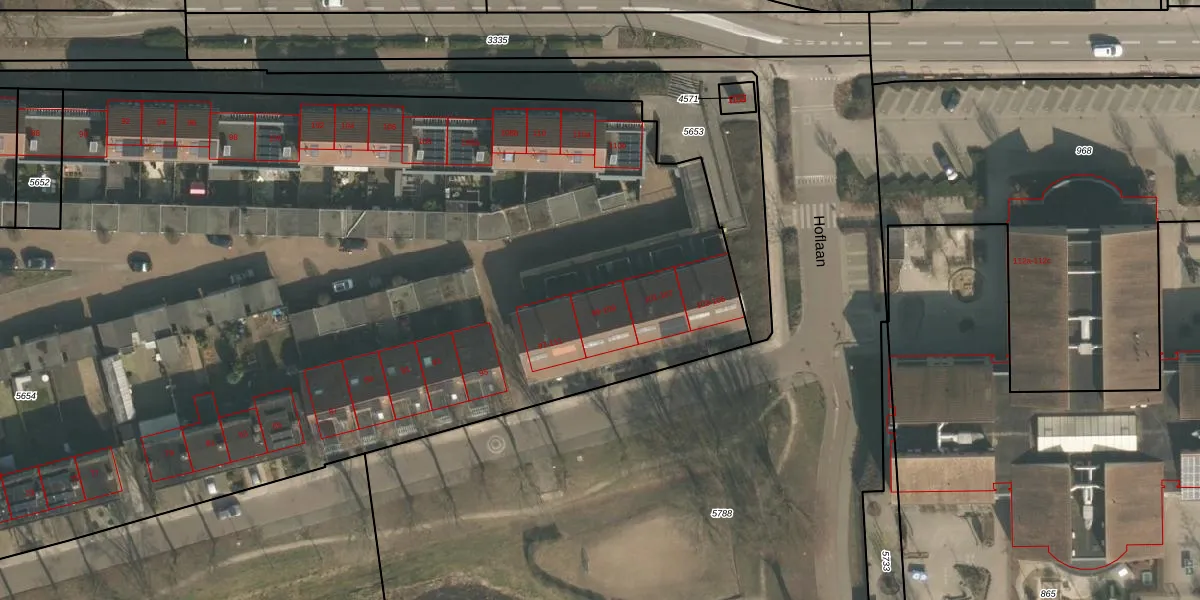 Hoflaan 109 is gelegen op kadastraal perceel GBK00L5654. Deze kadastrale aanduiding is uniek en wordt gebruikt door het Kadaster om eigendomsrechten en andere zakelijke rechten vast te leggen. Het perceel maakt onderdeel uit van de kadastrale gemeente Groesbeek.