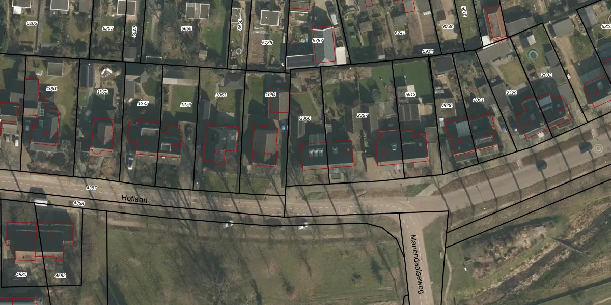 Hoflaan 21 is gelegen op kadastraal perceel GBK00L2366. Deze kadastrale aanduiding is uniek en wordt gebruikt door het Kadaster om eigendomsrechten en andere zakelijke rechten vast te leggen. Het perceel maakt onderdeel uit van de kadastrale gemeente Groesbeek.