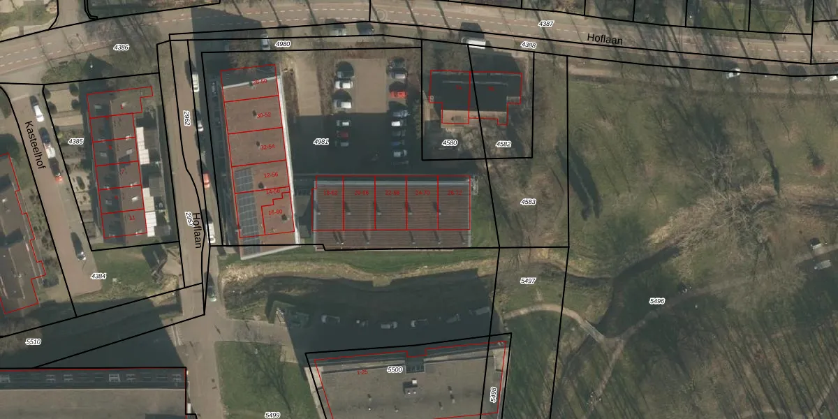 Hoflaan 24 is gelegen op kadastraal perceel GBK00L4981. Deze kadastrale aanduiding is uniek en wordt gebruikt door het Kadaster om eigendomsrechten en andere zakelijke rechten vast te leggen. Het perceel maakt onderdeel uit van de kadastrale gemeente Groesbeek.
