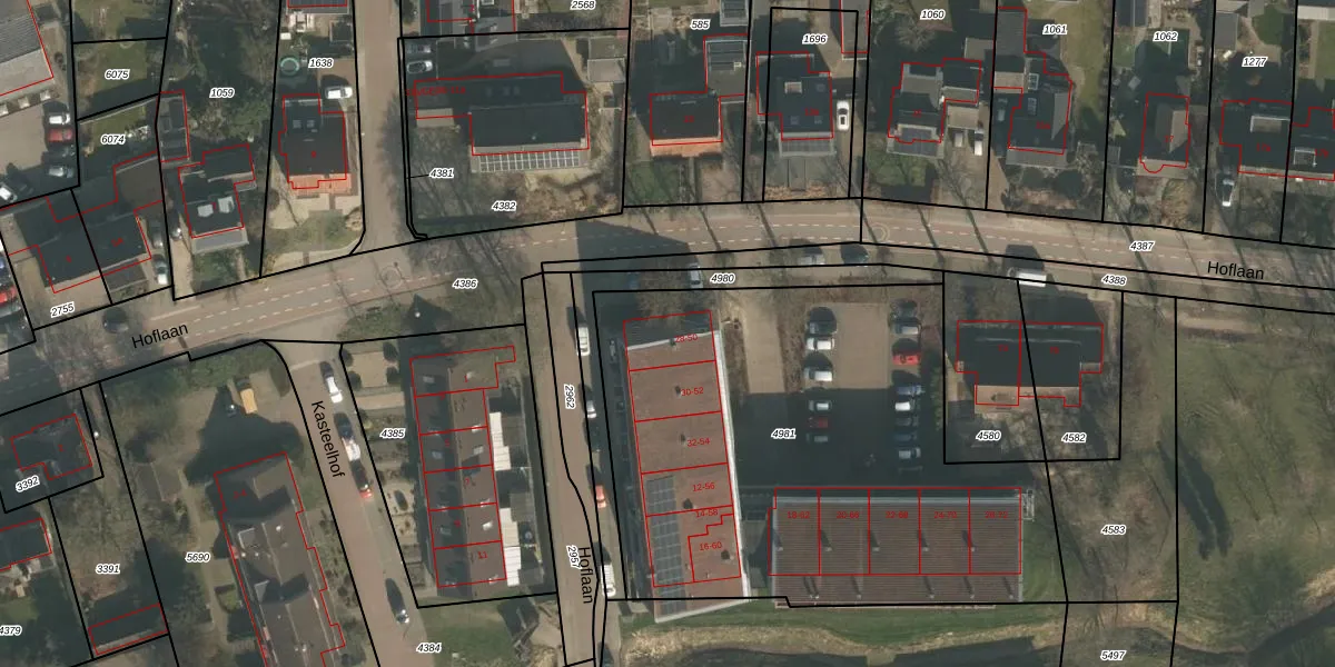 Het perceel waarop Hoflaan 28 staat heeft een oppervlakte van 2715 m². Dit is een zeer groot perceel. De perceeloppervlakte wordt geregistreerd door het Kadaster. Gedetailleerde informatie over de maten van dit perceel kunt u vinden in het rapport Kadastrale kaart met maatvoering van Hoflaan 28.