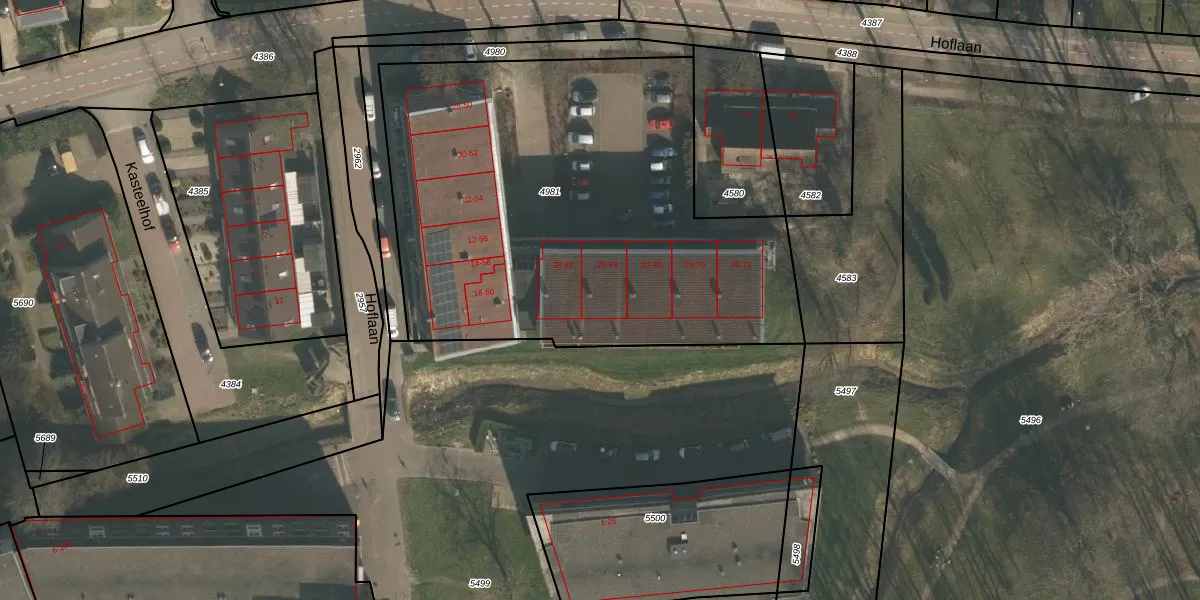 Hoflaan 42 is gelegen op kadastraal perceel GBK00L4981. Deze kadastrale aanduiding is uniek en wordt gebruikt door het Kadaster om eigendomsrechten en andere zakelijke rechten vast te leggen. Het perceel maakt onderdeel uit van de kadastrale gemeente Groesbeek.