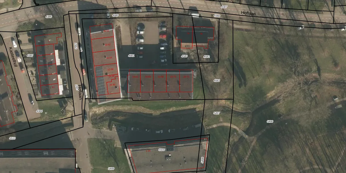 Hoflaan 46 is gelegen op kadastraal perceel GBK00L4981. Deze kadastrale aanduiding is uniek en wordt gebruikt door het Kadaster om eigendomsrechten en andere zakelijke rechten vast te leggen. Het perceel maakt onderdeel uit van de kadastrale gemeente Groesbeek.