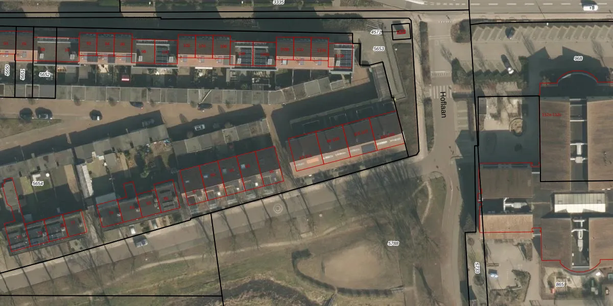 Hoflaan 97 is gelegen op kadastraal perceel GBK00L5654. Deze kadastrale aanduiding is uniek en wordt gebruikt door het Kadaster om eigendomsrechten en andere zakelijke rechten vast te leggen. Het perceel maakt onderdeel uit van de kadastrale gemeente Groesbeek.