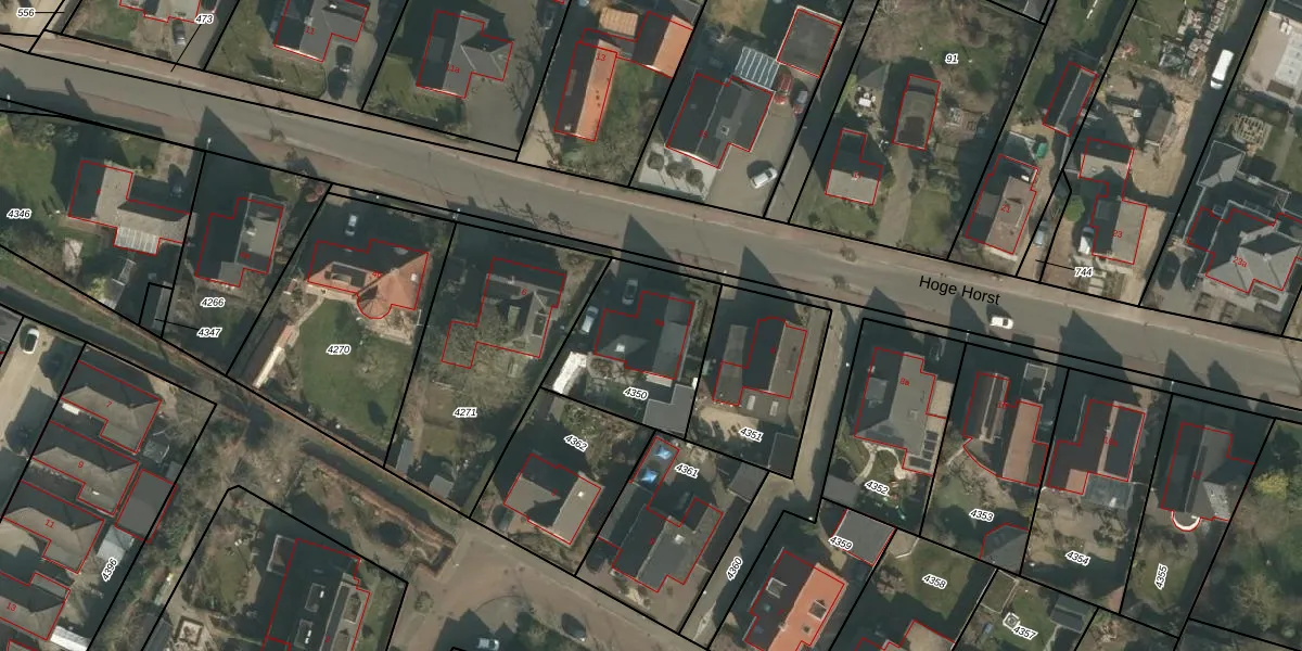 Het perceel waarop Hoge Horst 6-a staat heeft een oppervlakte van 480 m². Dit is een groot perceel. De perceeloppervlakte wordt geregistreerd door het Kadaster. Gedetailleerde informatie over de maten van dit perceel kunt u vinden in het rapport Kadastrale kaart met maatvoering van Hoge Horst 6-a.