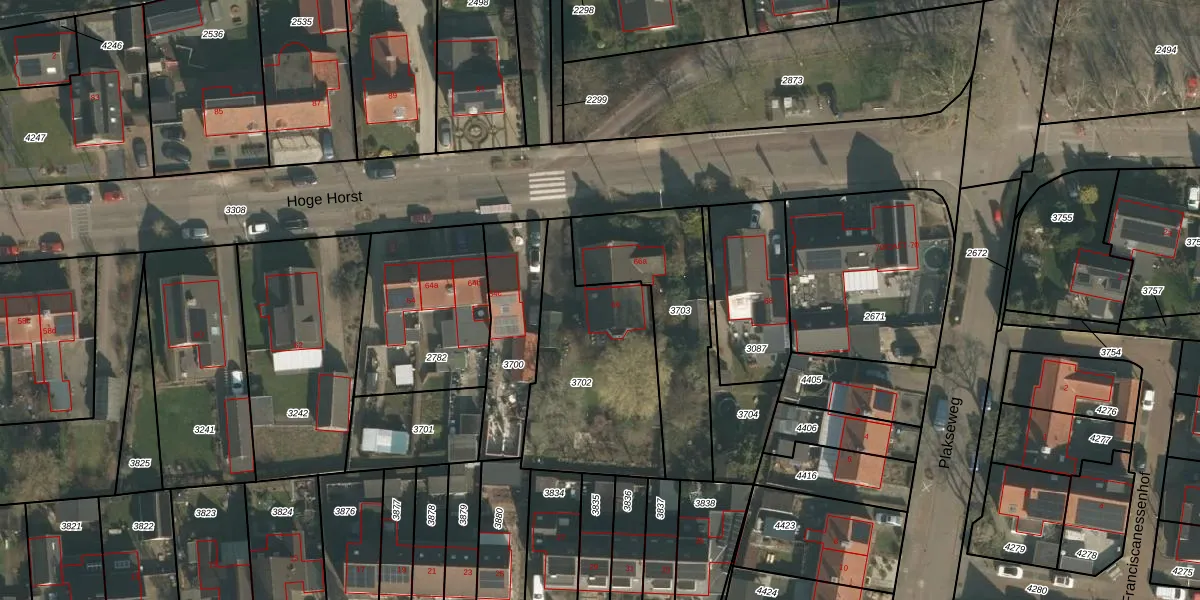 Hoge Horst 66-a is gelegen op kadastraal perceel GBK00C3702. Deze kadastrale aanduiding is uniek en wordt gebruikt door het Kadaster om eigendomsrechten en andere zakelijke rechten vast te leggen. Het perceel maakt onderdeel uit van de kadastrale gemeente Groesbeek.