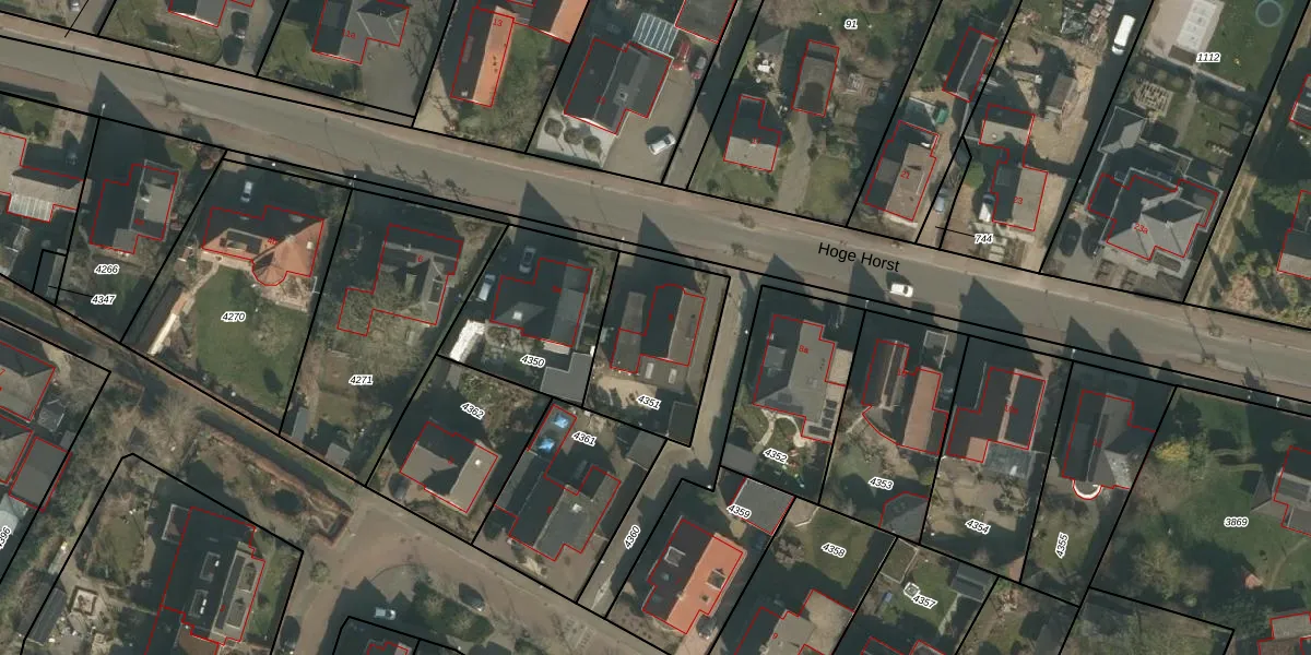 Het perceel waarop Hoge Horst 8 staat heeft een oppervlakte van 445 m². Dit is een groot perceel. De perceeloppervlakte wordt geregistreerd door het Kadaster. Gedetailleerde informatie over de maten van dit perceel kunt u vinden in het rapport Kadastrale kaart met maatvoering van Hoge Horst 8.