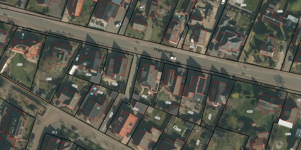 Het perceel waarop Hoge Horst 8-a staat heeft een oppervlakte van 475 m². Dit is een groot perceel. De perceeloppervlakte wordt geregistreerd door het Kadaster. Gedetailleerde informatie over de maten van dit perceel kunt u vinden in het rapport Kadastrale kaart met maatvoering van Hoge Horst 8-a.