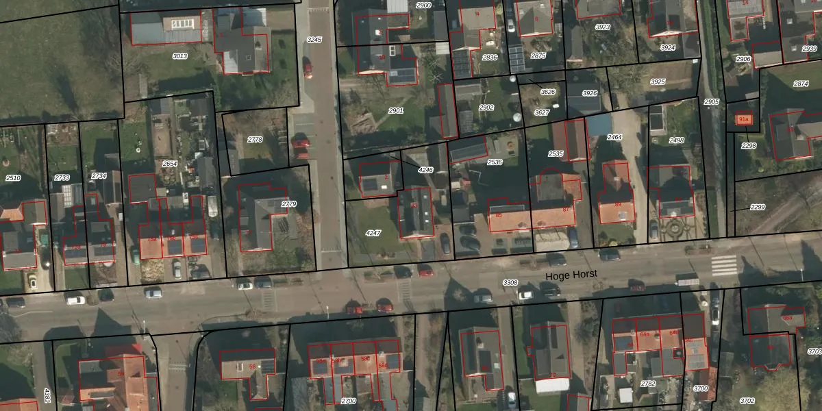 Het perceel waarop Hoge Horst 83 staat heeft een oppervlakte van 560 m². Dit is een groot perceel. De perceeloppervlakte wordt geregistreerd door het Kadaster. Gedetailleerde informatie over de maten van dit perceel kunt u vinden in het rapport Kadastrale kaart met maatvoering van Hoge Horst 83.