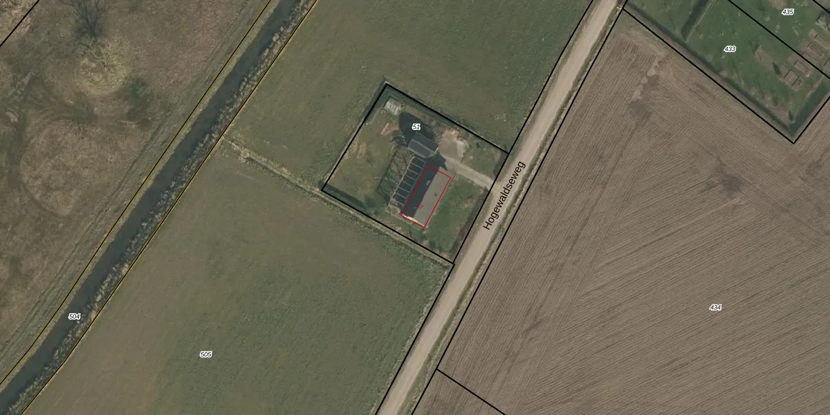 Het perceel waarop Hogewaldseweg 17 staat heeft een oppervlakte van 1045 m². Dit is een zeer groot perceel. De perceeloppervlakte wordt geregistreerd door het Kadaster. Gedetailleerde informatie over de maten van dit perceel kunt u vinden in het rapport Kadastrale kaart met maatvoering van Hogewaldseweg 17.