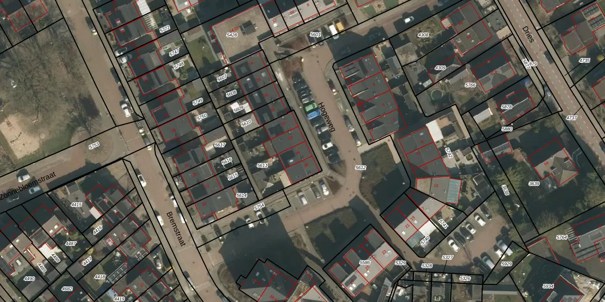 Hogeweg 36 is gelegen op kadastraal perceel GBK00L5611. Deze kadastrale aanduiding is uniek en wordt gebruikt door het Kadaster om eigendomsrechten en andere zakelijke rechten vast te leggen. Het perceel maakt onderdeel uit van de kadastrale gemeente Groesbeek.