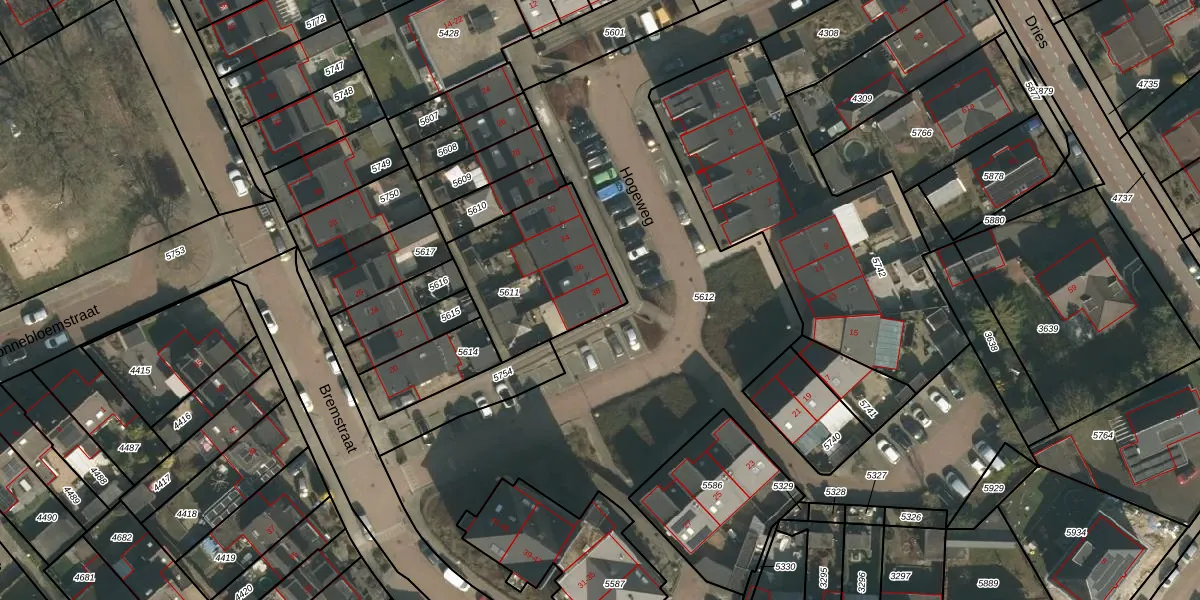 Het perceel waarop Hogeweg 38 staat heeft een oppervlakte van 511 m². Dit is een groot perceel. De perceeloppervlakte wordt geregistreerd door het Kadaster. Gedetailleerde informatie over de maten van dit perceel kunt u vinden in het rapport Kadastrale kaart met maatvoering van Hogeweg 38.