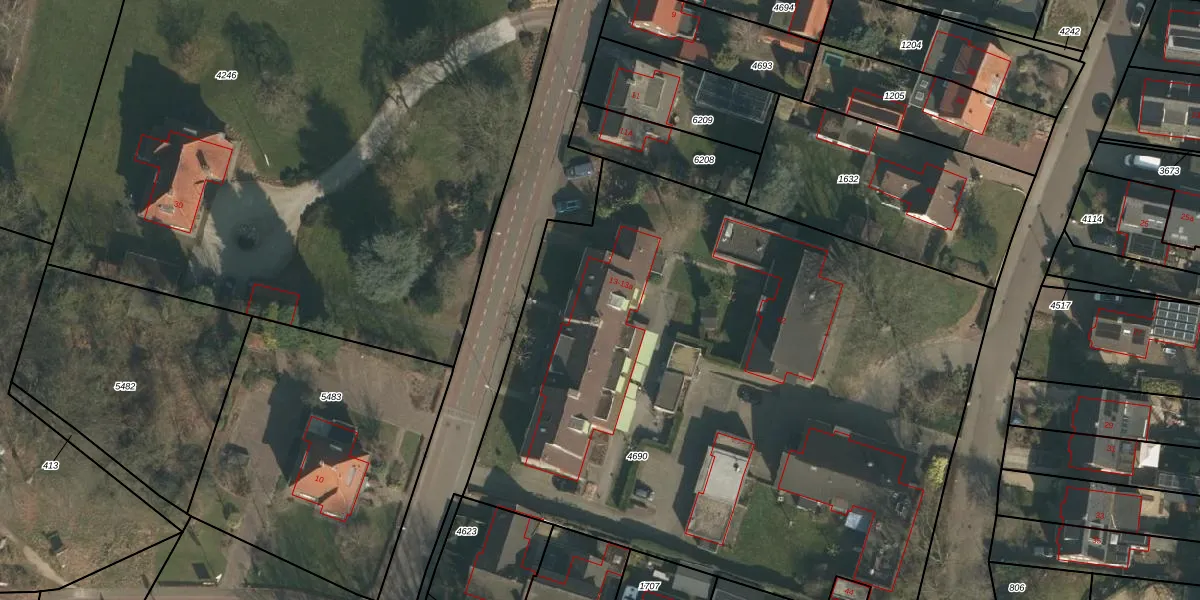 Het perceel waarop Houtlaan 13 staat heeft een oppervlakte van 4465 m². Dit is een zeer groot perceel. De perceeloppervlakte wordt geregistreerd door het Kadaster. Gedetailleerde informatie over de maten van dit perceel kunt u vinden in het rapport Kadastrale kaart met maatvoering van Houtlaan 13.