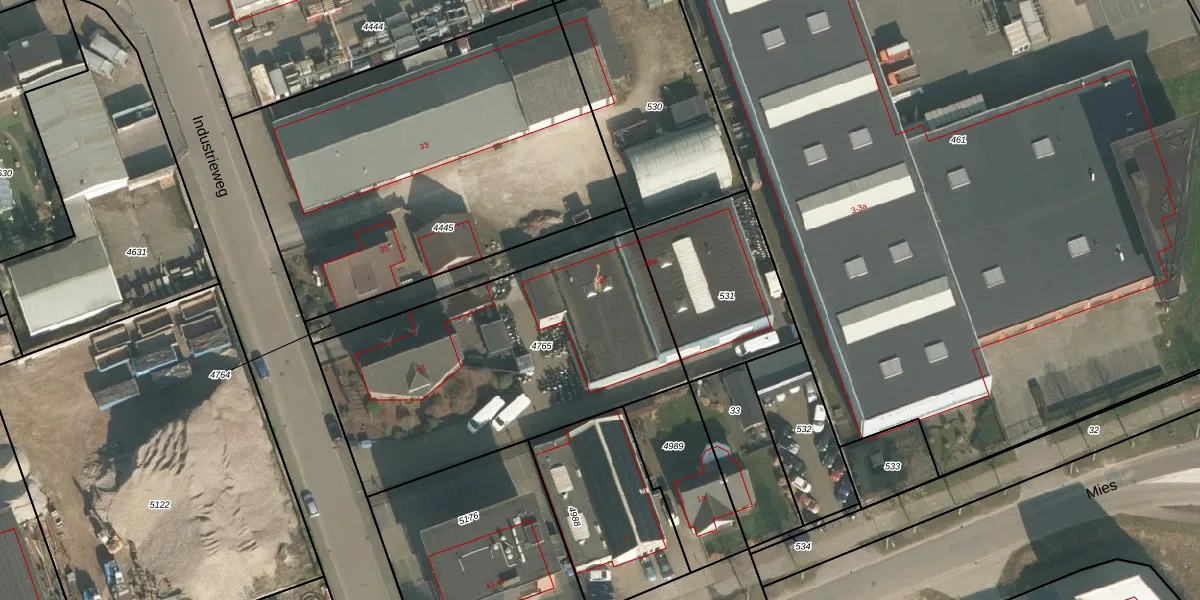 Industrieweg 39 is gelegen op kadastraal perceel GBK00L4765. Deze kadastrale aanduiding is uniek en wordt gebruikt door het Kadaster om eigendomsrechten en andere zakelijke rechten vast te leggen. Het perceel maakt onderdeel uit van de kadastrale gemeente Groesbeek.