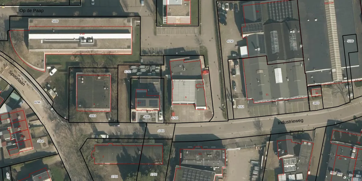Het perceel waarop Industrieweg 9 staat heeft een oppervlakte van 957 m². Dit is een groot perceel. De perceeloppervlakte wordt geregistreerd door het Kadaster. Gedetailleerde informatie over de maten van dit perceel kunt u vinden in het rapport Kadastrale kaart met maatvoering van Industrieweg 9.