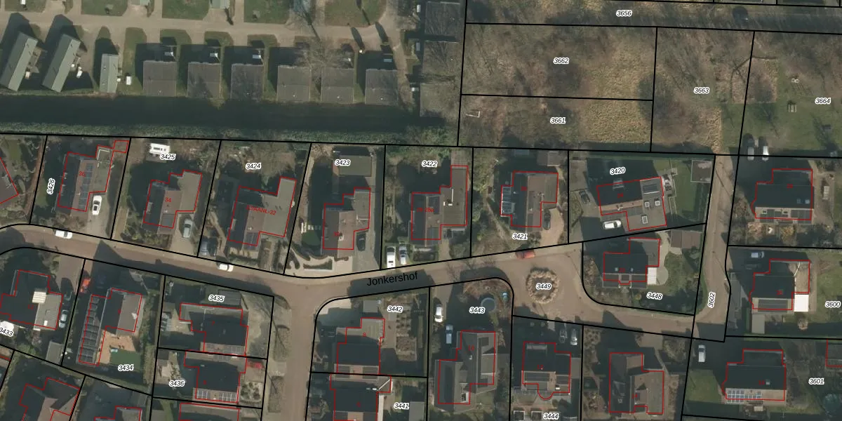 Het perceel waarop Jonkershof 28 staat heeft een oppervlakte van 591 m². Dit is een groot perceel. De perceeloppervlakte wordt geregistreerd door het Kadaster. Gedetailleerde informatie over de maten van dit perceel kunt u vinden in het rapport Kadastrale kaart met maatvoering van Jonkershof 28.