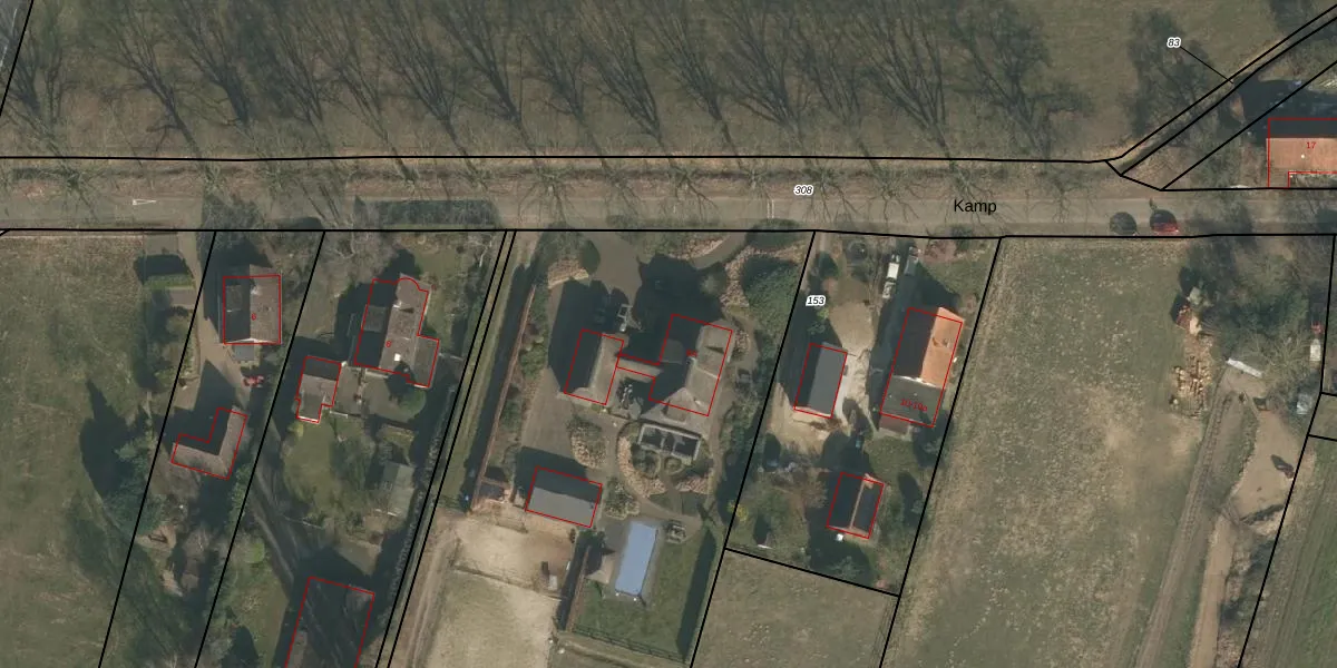 Het perceel waarop Kamp 8-a staat heeft een oppervlakte van 9890 m². Dit is een zeer groot perceel. De perceeloppervlakte wordt geregistreerd door het Kadaster. Gedetailleerde informatie over de maten van dit perceel kunt u vinden in het rapport Kadastrale kaart met maatvoering van Kamp 8-a.