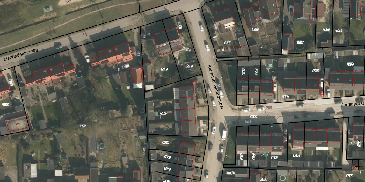 Het perceel waarop Kardinaal Gerardstraat 17 staat heeft een oppervlakte van 985 m². Dit is een groot perceel. De perceeloppervlakte wordt geregistreerd door het Kadaster. Gedetailleerde informatie over de maten van dit perceel kunt u vinden in het rapport Kadastrale kaart met maatvoering van Kardinaal Gerardstraat 17.