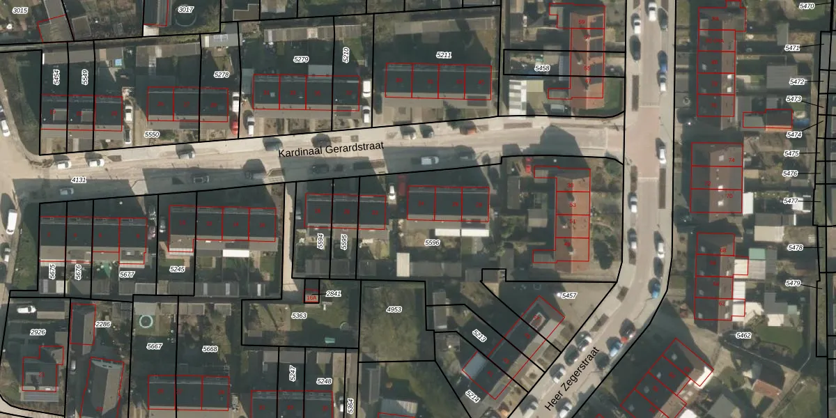 Kardinaal Gerardstraat 24 is gelegen op kadastraal perceel GBK00L5596. Deze kadastrale aanduiding is uniek en wordt gebruikt door het Kadaster om eigendomsrechten en andere zakelijke rechten vast te leggen. Het perceel maakt onderdeel uit van de kadastrale gemeente Groesbeek.