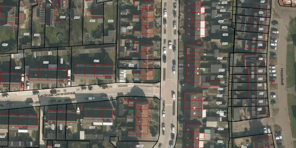 Het perceel waarop Kardinaal Gerardstraat 47 staat heeft een oppervlakte van 2293 m². Dit is een zeer groot perceel. De perceeloppervlakte wordt geregistreerd door het Kadaster. Gedetailleerde informatie over de maten van dit perceel kunt u vinden in het rapport Kadastrale kaart met maatvoering van Kardinaal Gerardstraat 47.