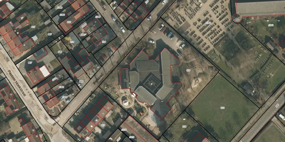 Het perceel waarop Kerkpad 5 staat heeft een oppervlakte van 3680 m². Dit is een zeer groot perceel. De perceeloppervlakte wordt geregistreerd door het Kadaster. Gedetailleerde informatie over de maten van dit perceel kunt u vinden in het rapport Kadastrale kaart met maatvoering van Kerkpad 5.