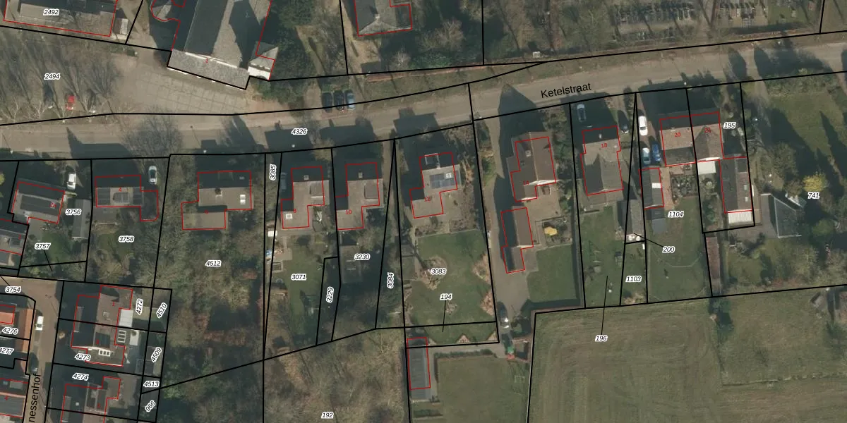 Ketelstraat 12 is gelegen op kadastraal perceel GBK00C3083. Deze kadastrale aanduiding is uniek en wordt gebruikt door het Kadaster om eigendomsrechten en andere zakelijke rechten vast te leggen. Het perceel maakt onderdeel uit van de kadastrale gemeente Groesbeek.