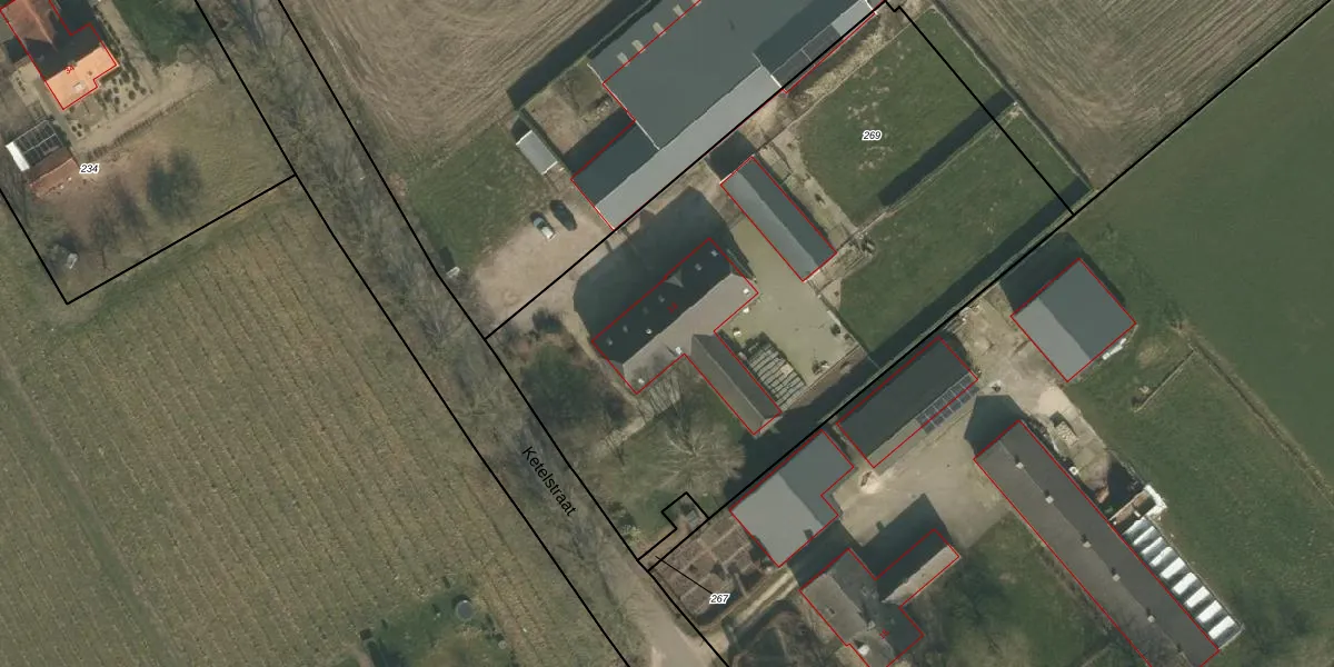 Het perceel waarop Ketelstraat 13 staat heeft een oppervlakte van 3425 m². Dit is een zeer groot perceel. De perceeloppervlakte wordt geregistreerd door het Kadaster. Gedetailleerde informatie over de maten van dit perceel kunt u vinden in het rapport Kadastrale kaart met maatvoering van Ketelstraat 13.