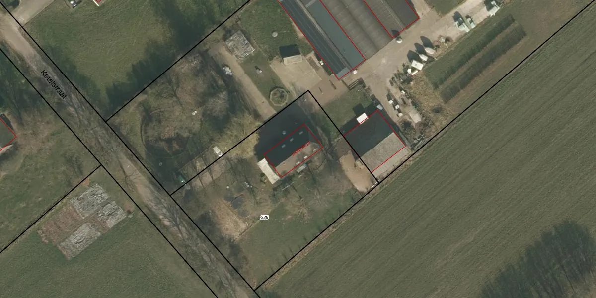 Ketelstraat 19 is gelegen op kadastraal perceel GBK00P238. Deze kadastrale aanduiding is uniek en wordt gebruikt door het Kadaster om eigendomsrechten en andere zakelijke rechten vast te leggen. Het perceel maakt onderdeel uit van de kadastrale gemeente Groesbeek.