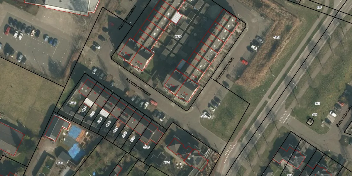 Klompenmaker 12 is gelegen op kadastraal perceel GBK00L5533. Deze kadastrale aanduiding is uniek en wordt gebruikt door het Kadaster om eigendomsrechten en andere zakelijke rechten vast te leggen. Het perceel maakt onderdeel uit van de kadastrale gemeente Groesbeek.