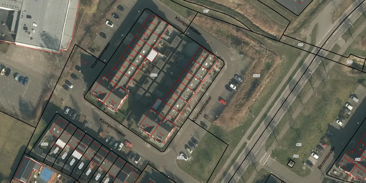 Klompenmaker 18 is gelegen op kadastraal perceel GBK00L5533. Deze kadastrale aanduiding is uniek en wordt gebruikt door het Kadaster om eigendomsrechten en andere zakelijke rechten vast te leggen. Het perceel maakt onderdeel uit van de kadastrale gemeente Groesbeek.