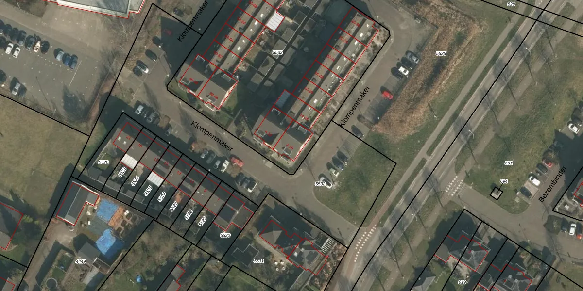 Klompenmaker 2 is gelegen op kadastraal perceel GBK00L5533. Deze kadastrale aanduiding is uniek en wordt gebruikt door het Kadaster om eigendomsrechten en andere zakelijke rechten vast te leggen. Het perceel maakt onderdeel uit van de kadastrale gemeente Groesbeek.