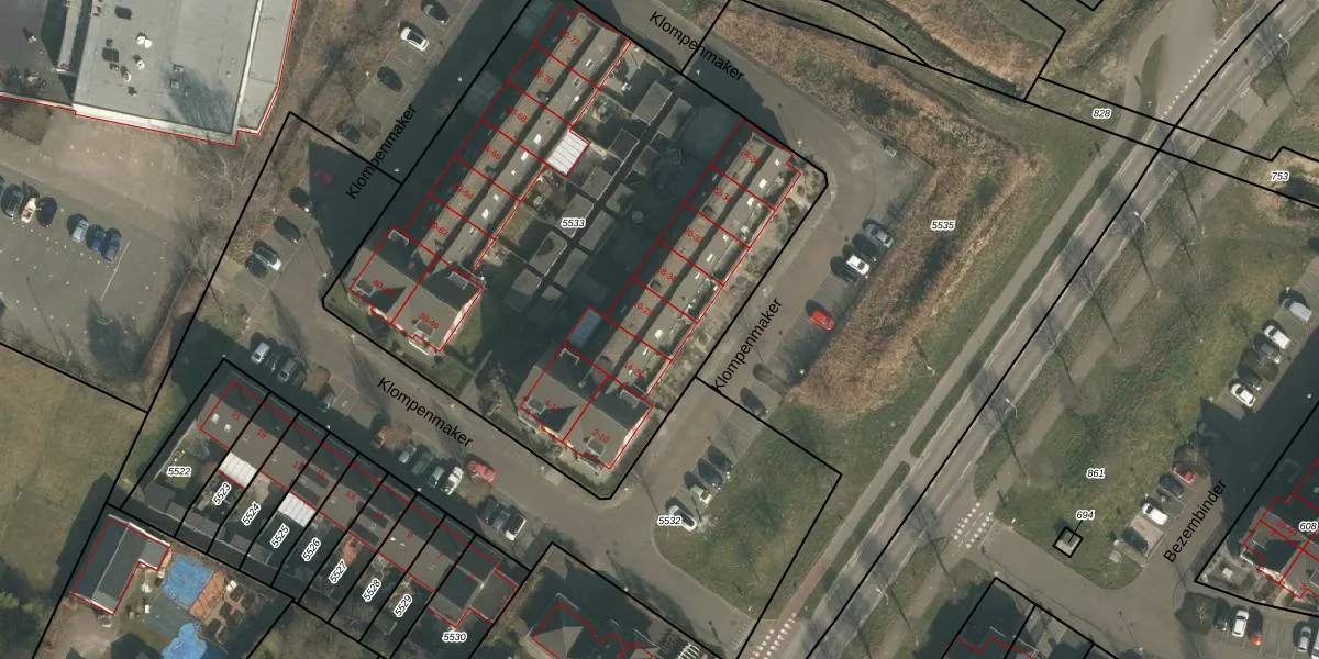 Klompenmaker 28 is gelegen op kadastraal perceel GBK00L5533. Deze kadastrale aanduiding is uniek en wordt gebruikt door het Kadaster om eigendomsrechten en andere zakelijke rechten vast te leggen. Het perceel maakt onderdeel uit van de kadastrale gemeente Groesbeek.
