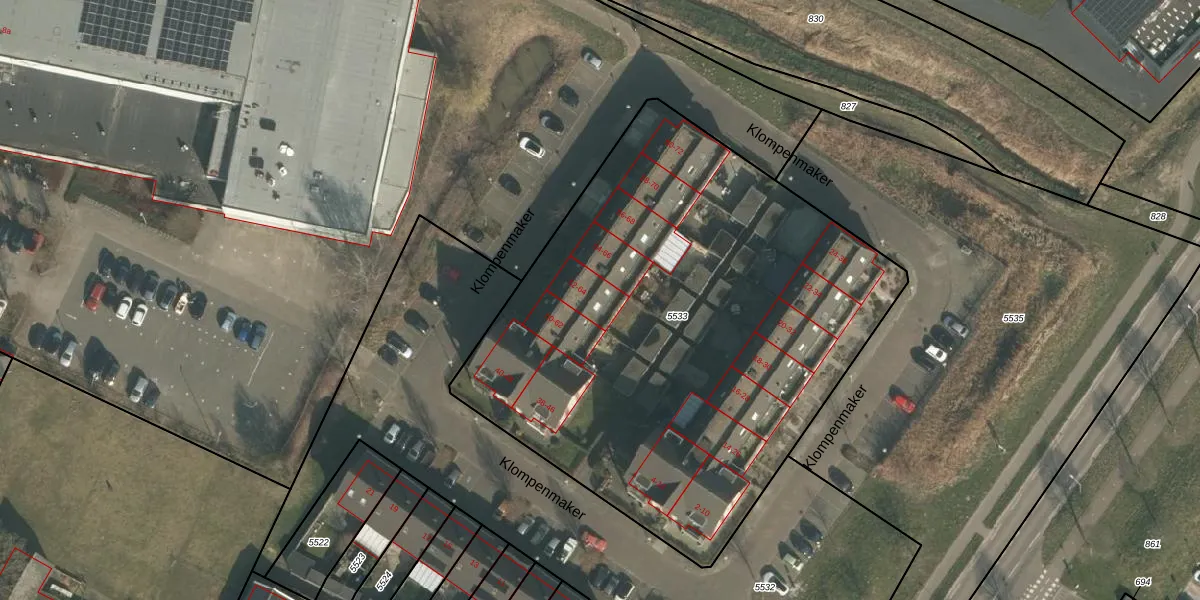 Klompenmaker 64 is gelegen op kadastraal perceel GBK00L5533. Deze kadastrale aanduiding is uniek en wordt gebruikt door het Kadaster om eigendomsrechten en andere zakelijke rechten vast te leggen. Het perceel maakt onderdeel uit van de kadastrale gemeente Groesbeek.