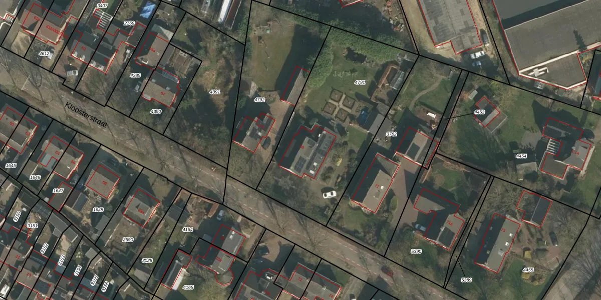 Kloosterstraat 69 is gelegen op kadastraal perceel GBK00L4791. Deze kadastrale aanduiding is uniek en wordt gebruikt door het Kadaster om eigendomsrechten en andere zakelijke rechten vast te leggen. Het perceel maakt onderdeel uit van de kadastrale gemeente Groesbeek.