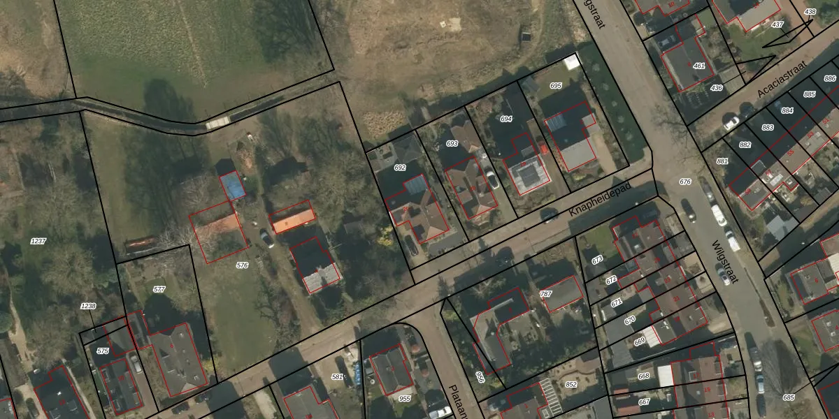 Het perceel waarop Knapheidepad 2-c staat heeft een oppervlakte van 425 m². Dit is een groot perceel. De perceeloppervlakte wordt geregistreerd door het Kadaster. Gedetailleerde informatie over de maten van dit perceel kunt u vinden in het rapport Kadastrale kaart met maatvoering van Knapheidepad 2-c.