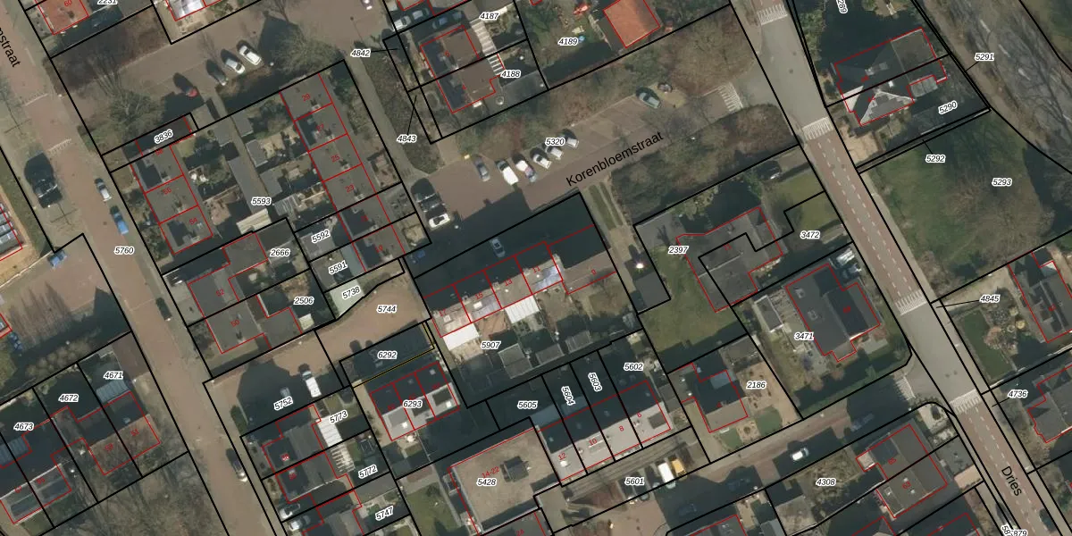 Korenbloemstraat 11 is gelegen op kadastraal perceel GBK00L5907. Deze kadastrale aanduiding is uniek en wordt gebruikt door het Kadaster om eigendomsrechten en andere zakelijke rechten vast te leggen. Het perceel maakt onderdeel uit van de kadastrale gemeente Groesbeek.