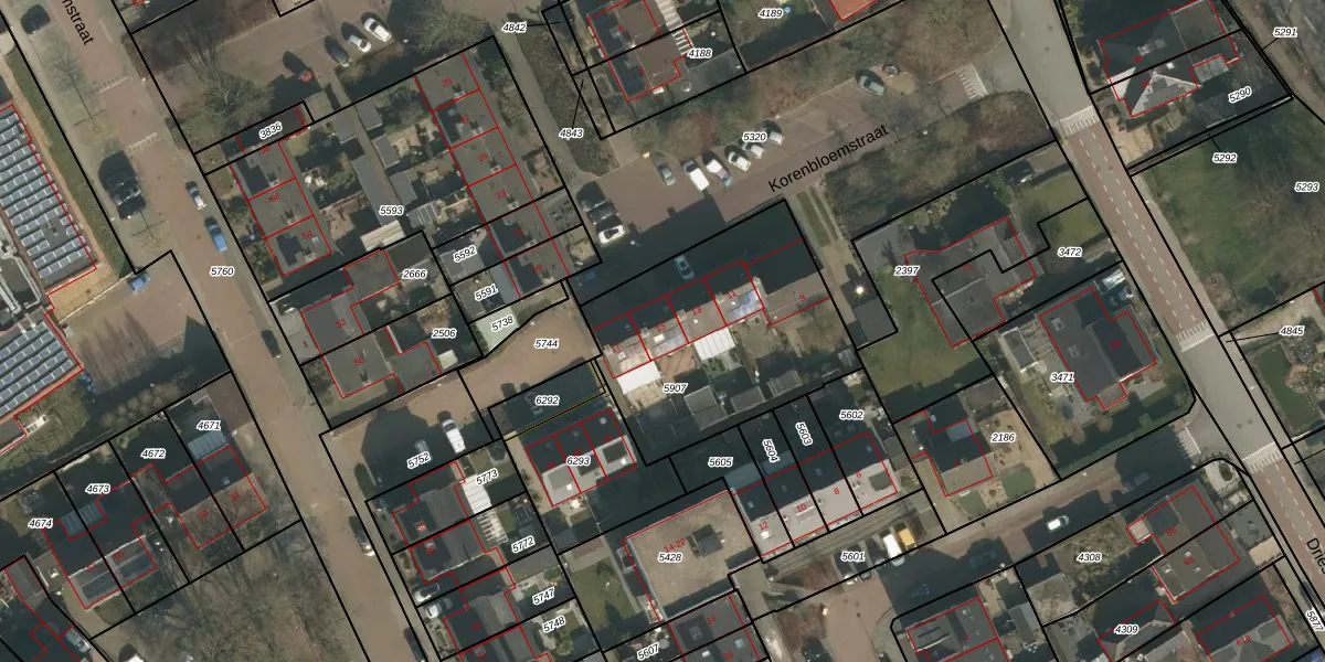 Korenbloemstraat 15 is gelegen op kadastraal perceel GBK00L5907. Deze kadastrale aanduiding is uniek en wordt gebruikt door het Kadaster om eigendomsrechten en andere zakelijke rechten vast te leggen. Het perceel maakt onderdeel uit van de kadastrale gemeente Groesbeek.