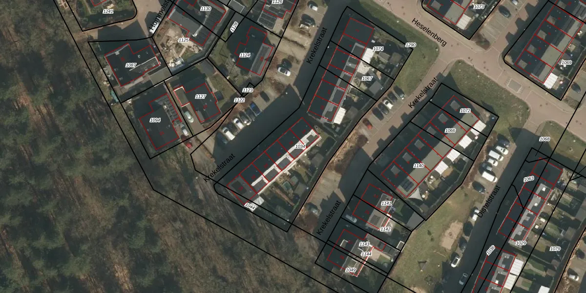 Het perceel waarop Krekelstraat 16 staat heeft een oppervlakte van 1185 m². Dit is een zeer groot perceel. De perceeloppervlakte wordt geregistreerd door het Kadaster. Gedetailleerde informatie over de maten van dit perceel kunt u vinden in het rapport Kadastrale kaart met maatvoering van Krekelstraat 16.