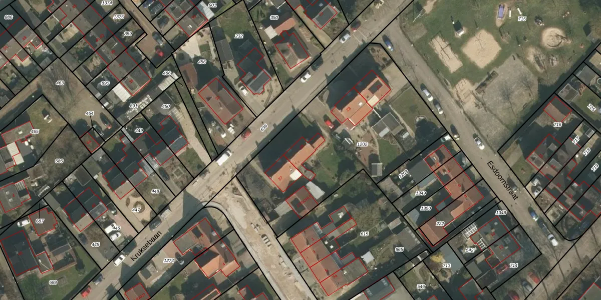 Het perceel waarop Kruksebaan 25 staat heeft een oppervlakte van 2069 m². Dit is een zeer groot perceel. De perceeloppervlakte wordt geregistreerd door het Kadaster. Gedetailleerde informatie over de maten van dit perceel kunt u vinden in het rapport Kadastrale kaart met maatvoering van Kruksebaan 25.