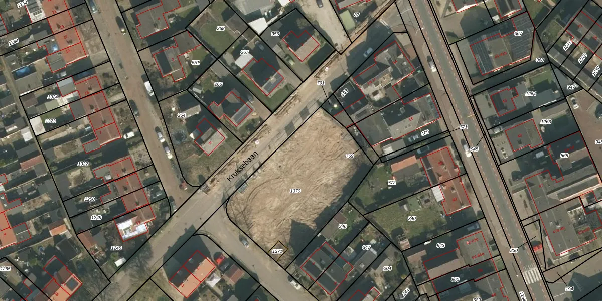 Het perceel waarop Kruksebaan 3-d staat heeft een oppervlakte van 1346 m². Dit is een zeer groot perceel. De perceeloppervlakte wordt geregistreerd door het Kadaster. Gedetailleerde informatie over de maten van dit perceel kunt u vinden in het rapport Kadastrale kaart met maatvoering van Kruksebaan 3-d.